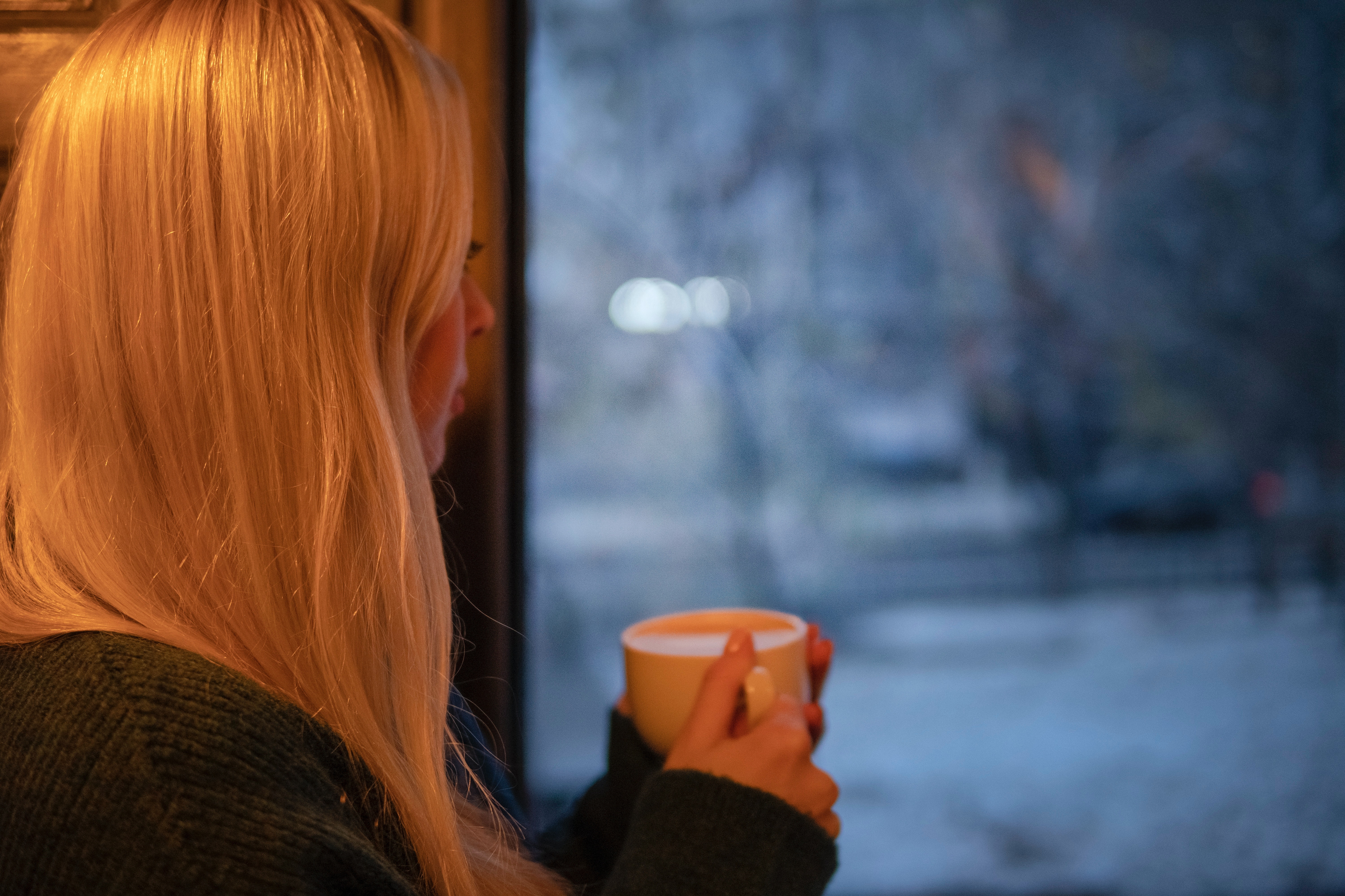 Woman looking out window